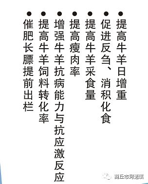 促进牛羊等草食动物脂肪代谢, 增加肌肉含量,使牛肉的白色脂肪在肌肉纤维中有序沉积,形成密集的大理石花纹,长期使用,可以显著改善肉质结构,使肉质更加鲜美。